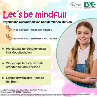 Im Projekt „Let’s be Mindful“, das sich mit der HBSC-Studie und der psychischen Gesundheit von Kindern beschäftigt, übernahm ich die kreative Gestaltung verschiedener Kommunikationsmaterialien. In Zusammenarbeit mit der IKK Gesund Plus als Förderinstitution entstanden ein Social-Media-Beitrag sowie ein Poster, beide gestaltet mit Adobe Photoshop.